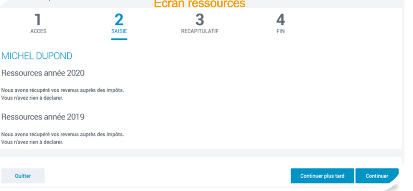 Si elles ne sont pas trouvées, alors l’usager doit déclarer ses ressources annuelles.