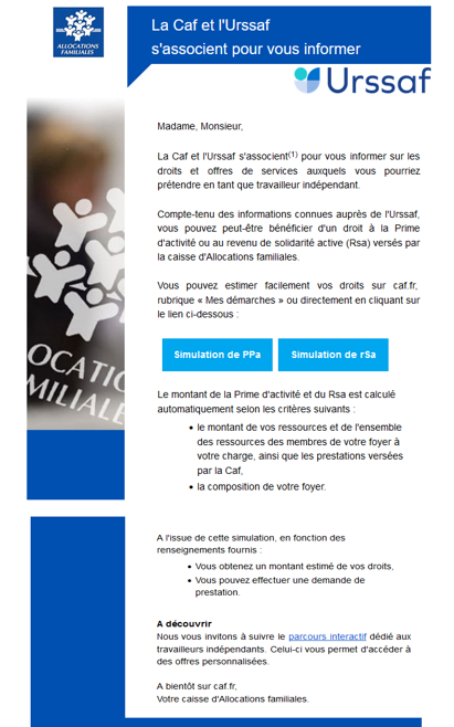 Une information commune URSSAF / CAF sera adressée aux travailleurs indépendants début février 2024 :