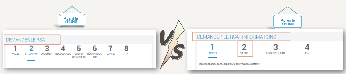 À chaque étape, on rappelle à l’usager où il se situe dans la téléprocédure (demande RSA) ainsi que dans la sous partie correspondante.