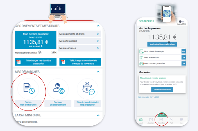 Cette restitution est accessible depuis l’espace personnel rubrique « Mes démarches » sur le site caf.fr ou sur l’appli mobile.